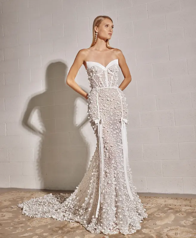 We meticulously curate a collection of the world’s most exquisite wedding gowns by partnering with top designers and ateliers from around the globe to bring you an unparalleled selection of unique and breathtaking designs.